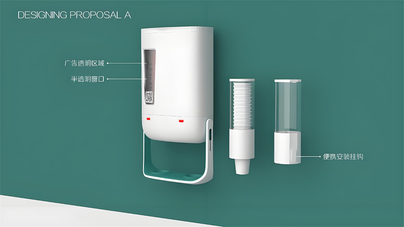 設計首先源于功能。考慮到茶飲機需要掛墻安裝,我們設計了穩固的背膠式固定架,力求安裝簡便又可靠。