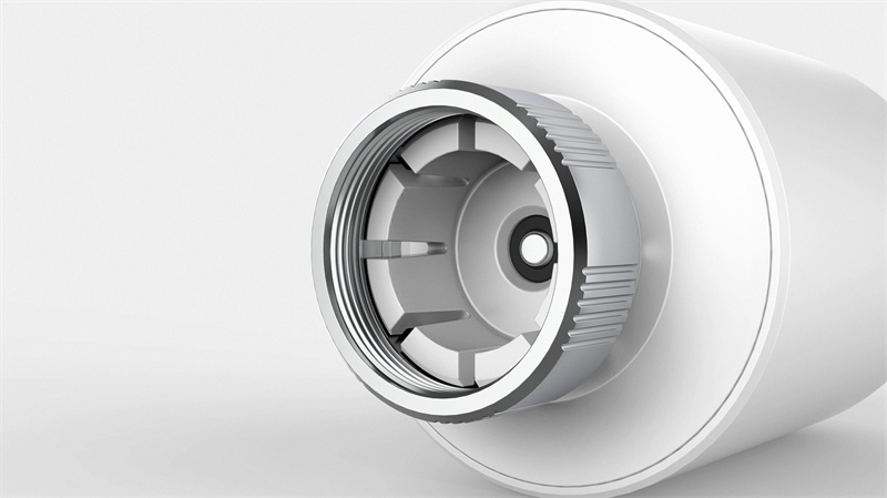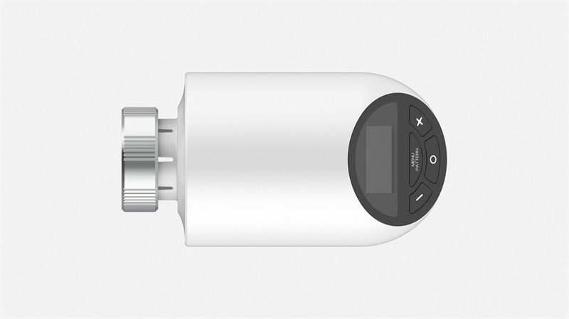 金屬旋鈕的內齒紋設計使其能與暖氣閥門緊密連接,接口簡潔。顯示屏在熄滅狀態下與白色面板融為一體,保持外觀的整體性。