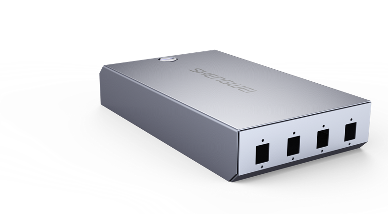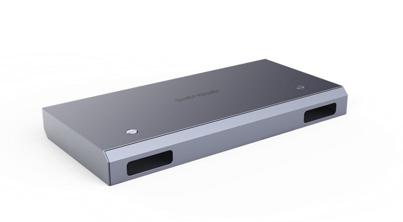 利落的金屬邊框將盒體清晰劃分為接口、操作與散熱區(qū)域,功能分區(qū)一目了然,技術人員可快速定位操作點。